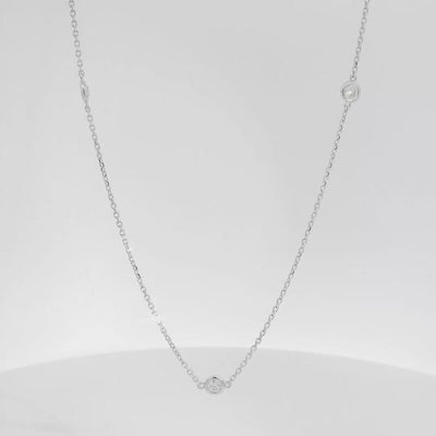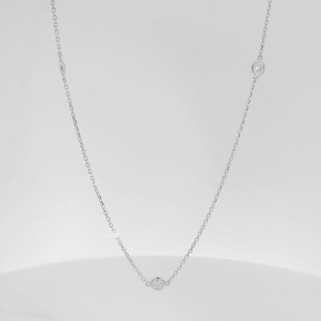Five individually set, sparkling diamonds are delicately spaced along a fine chain in this elegant bezel necklace. This timeless piece offers a subtle touch of brilliance that's perfect for everyday wear or layering.