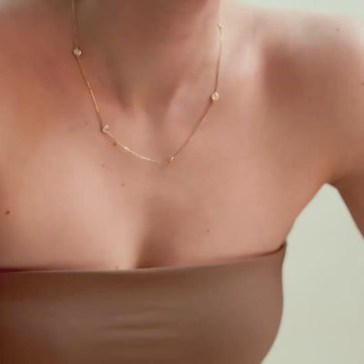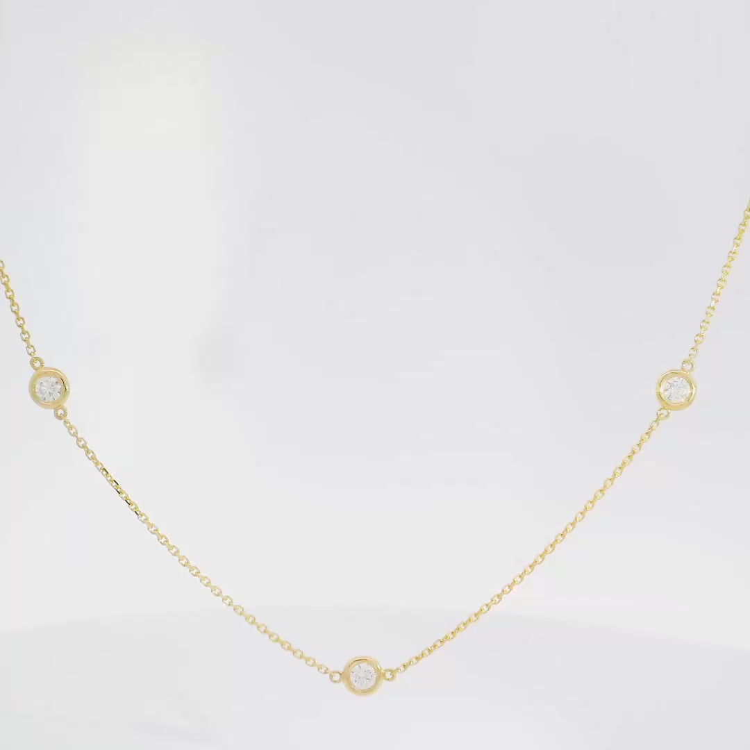 Seven individually set, sparkling natural diamonds are delicately spaced along a fine chain in this elegant bezel necklace. This timeless piece offers a subtle touch of brilliance that's perfect for everyday wear or layering.