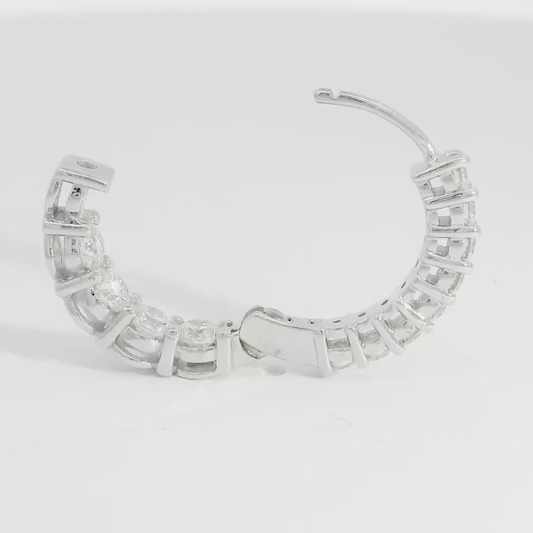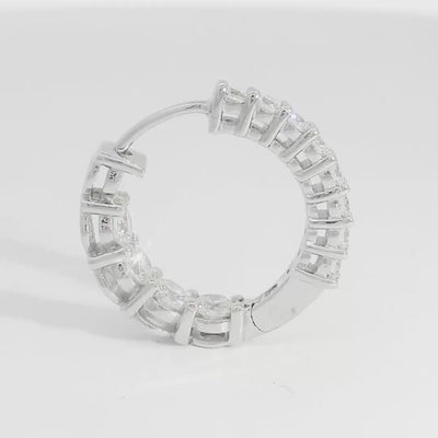 These delicate 12mm hoop earrings are set with brilliant-cut round diamonds, offering a subtle yet sophisticated sparkle for everyday elegance. Their versatile size makes them a timeless addition to any jewelry collection.