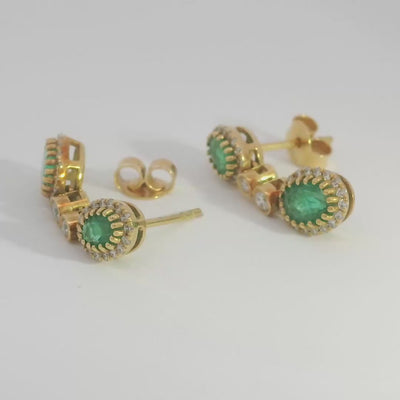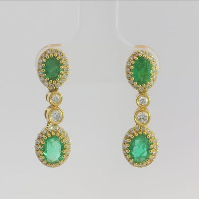 These exquisite drop earrings feature vibrant emeralds paired with sparkling diamonds, creating a captivating dance of color and light. Their elegant design adds a touch of refined glamour to any special occasion.