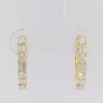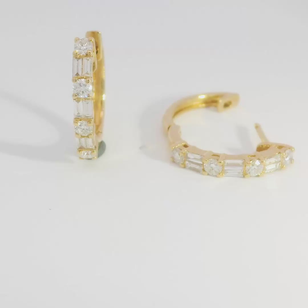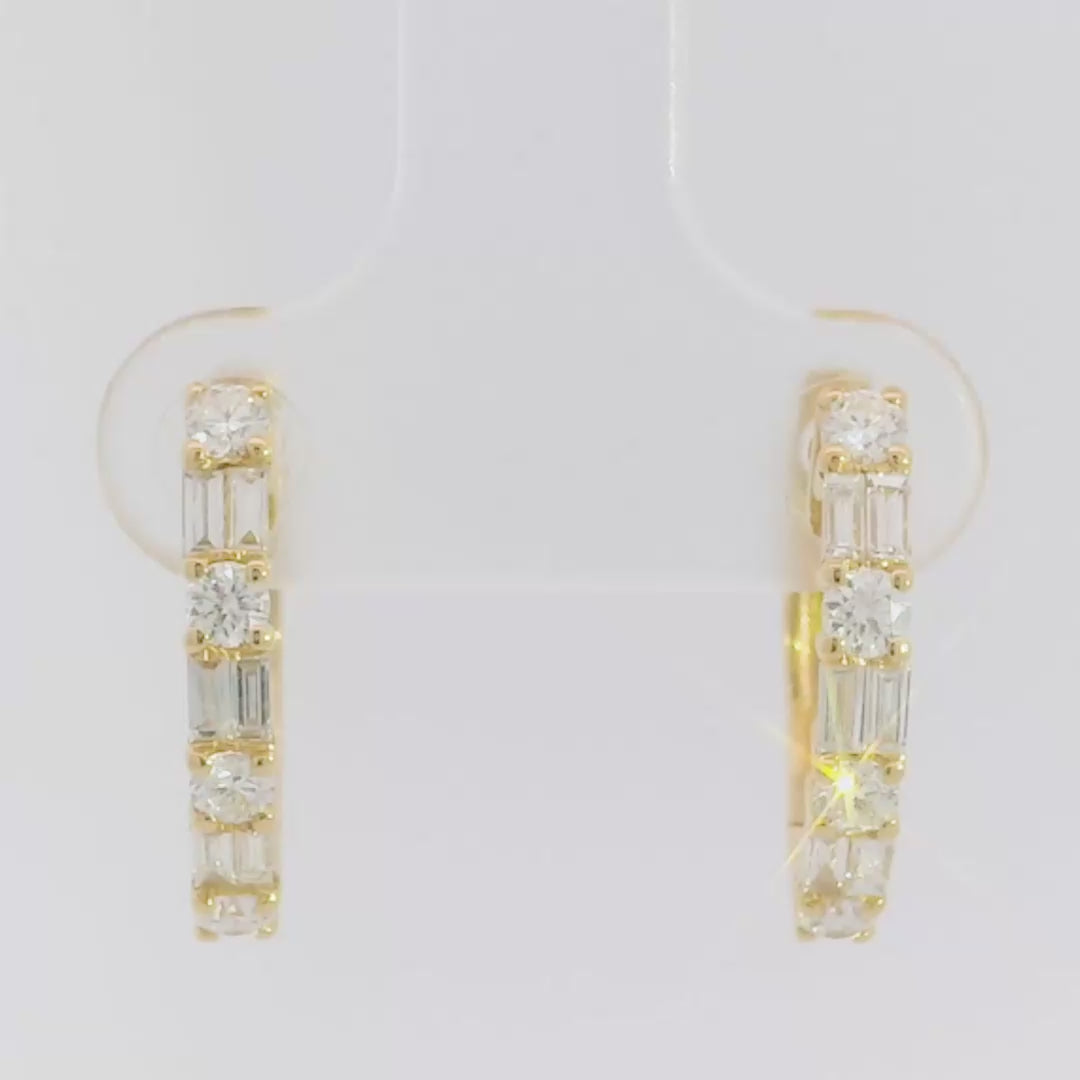 These petite 11mm hoop earrings feature a delicate combination of emerald and round-cut diamonds, offering a unique and sophisticated sparkle for everyday elegance. Their subtle size makes them a versatile addition to any jewelry collection.