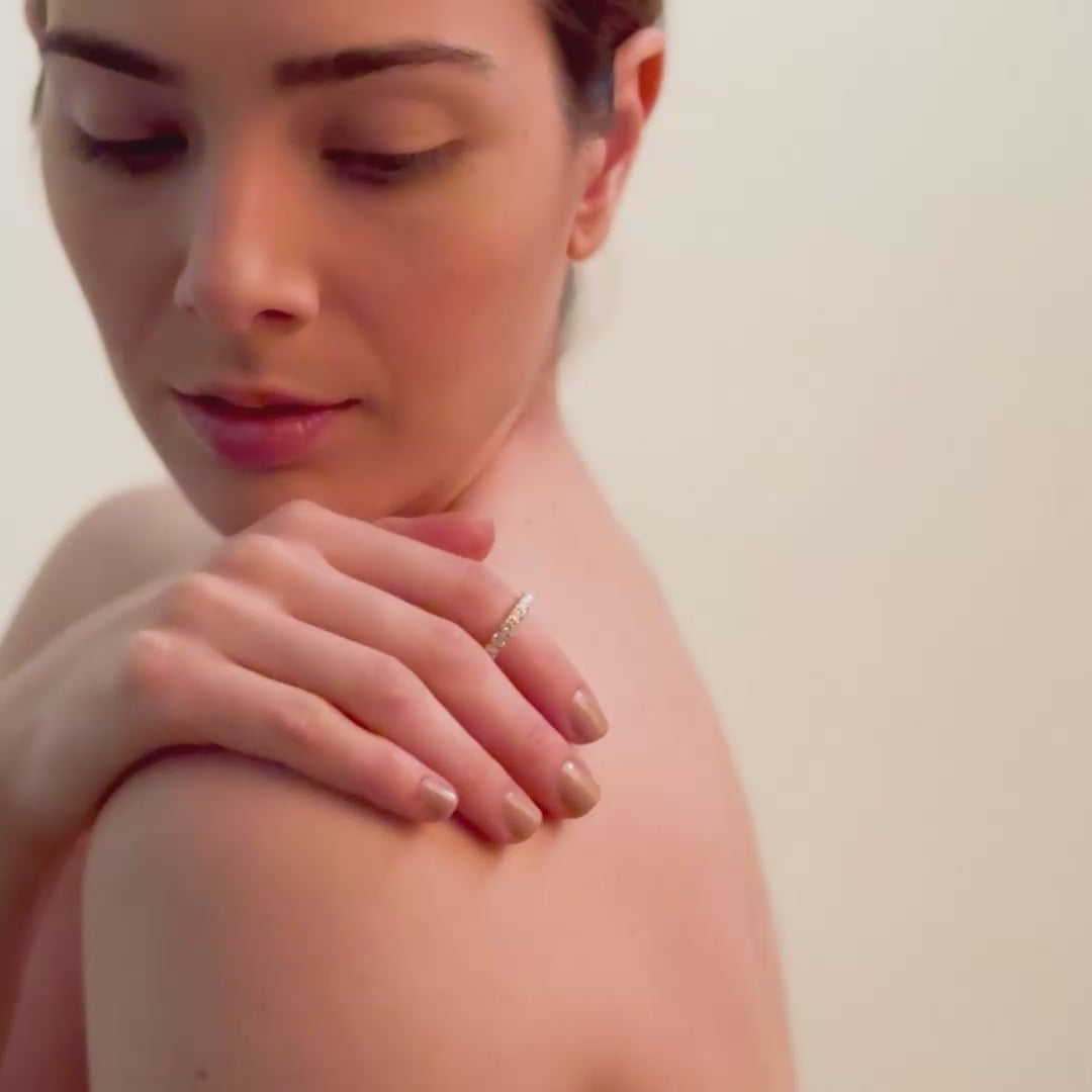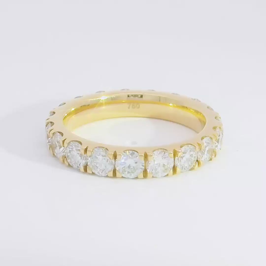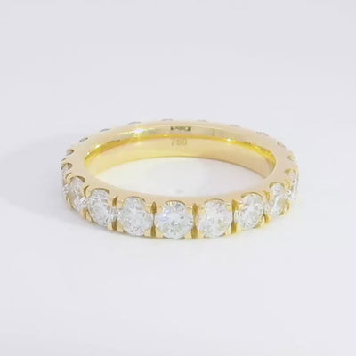 This luxurious eternity band is completely encrusted with dazzling pave-set diamonds, totaling an impressive 2.7 carats of brilliance. A symbol of everlasting love, this ring offers continuous sparkle from every angle.
