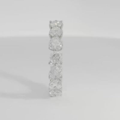 This exquisitely romantic full eternity band features a continuous circle of perfectly matched heart-shaped diamonds, symbolizing unending love and commitment. Each dazzling heart is meticulously set, creating a brilliant and captivating display around the entire circumference of the band. It's a truly unique and luxurious piece, perfect for celebrating a cherished bond or adding a touch of sentimental sparkle.