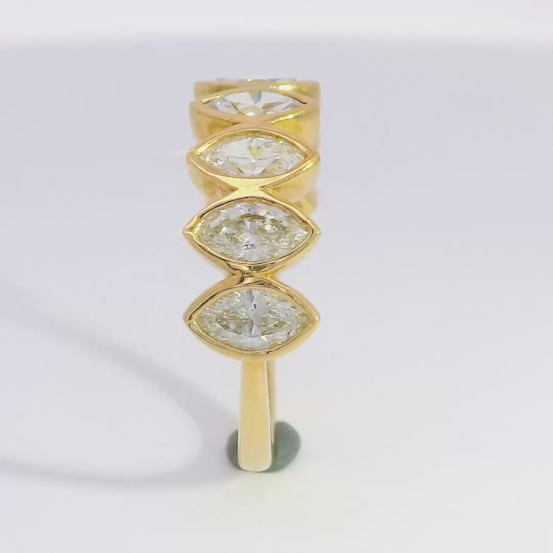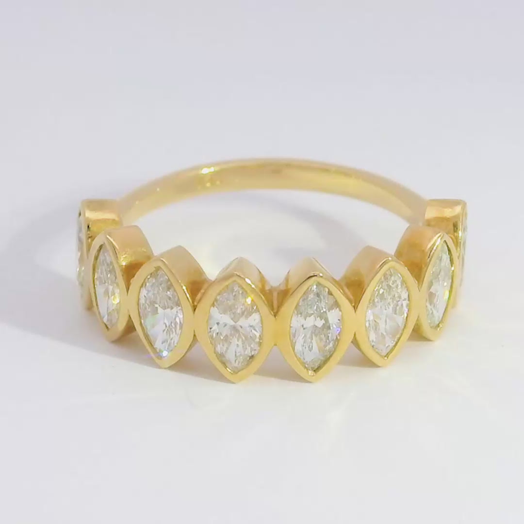 This elegant band features marquise-shaped diamonds in a bezel setting. Offering a subtle yet sophisticated sparkle, this ring is perfect for everyday elegance or stacking.