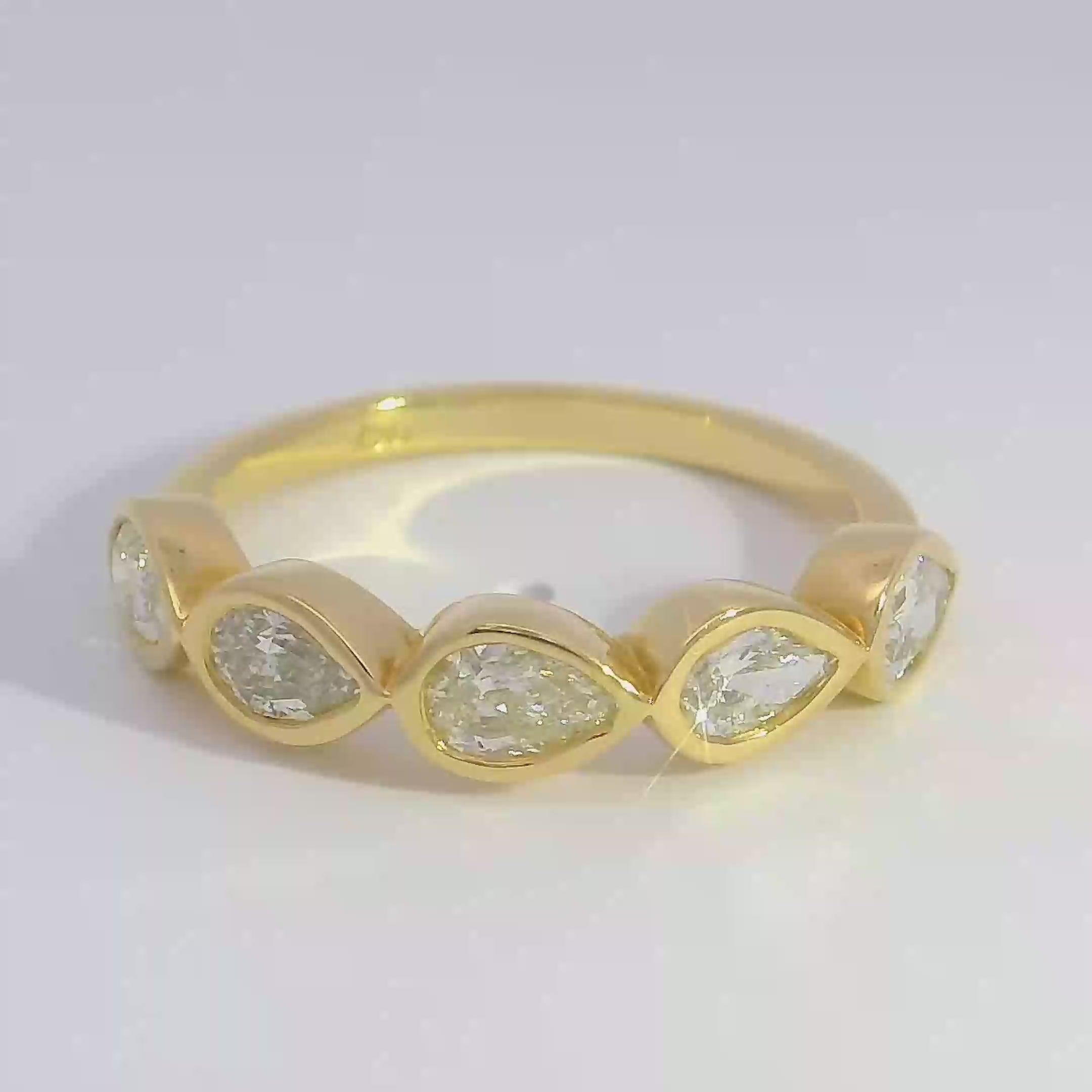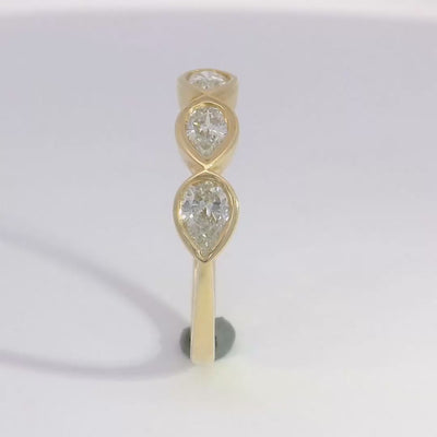 This refined band features 5 pear-shaped diamonds in a bezel setting. Offering a subtle yet sophisticated sparkle, this ring is perfect for everyday wear or stacking.