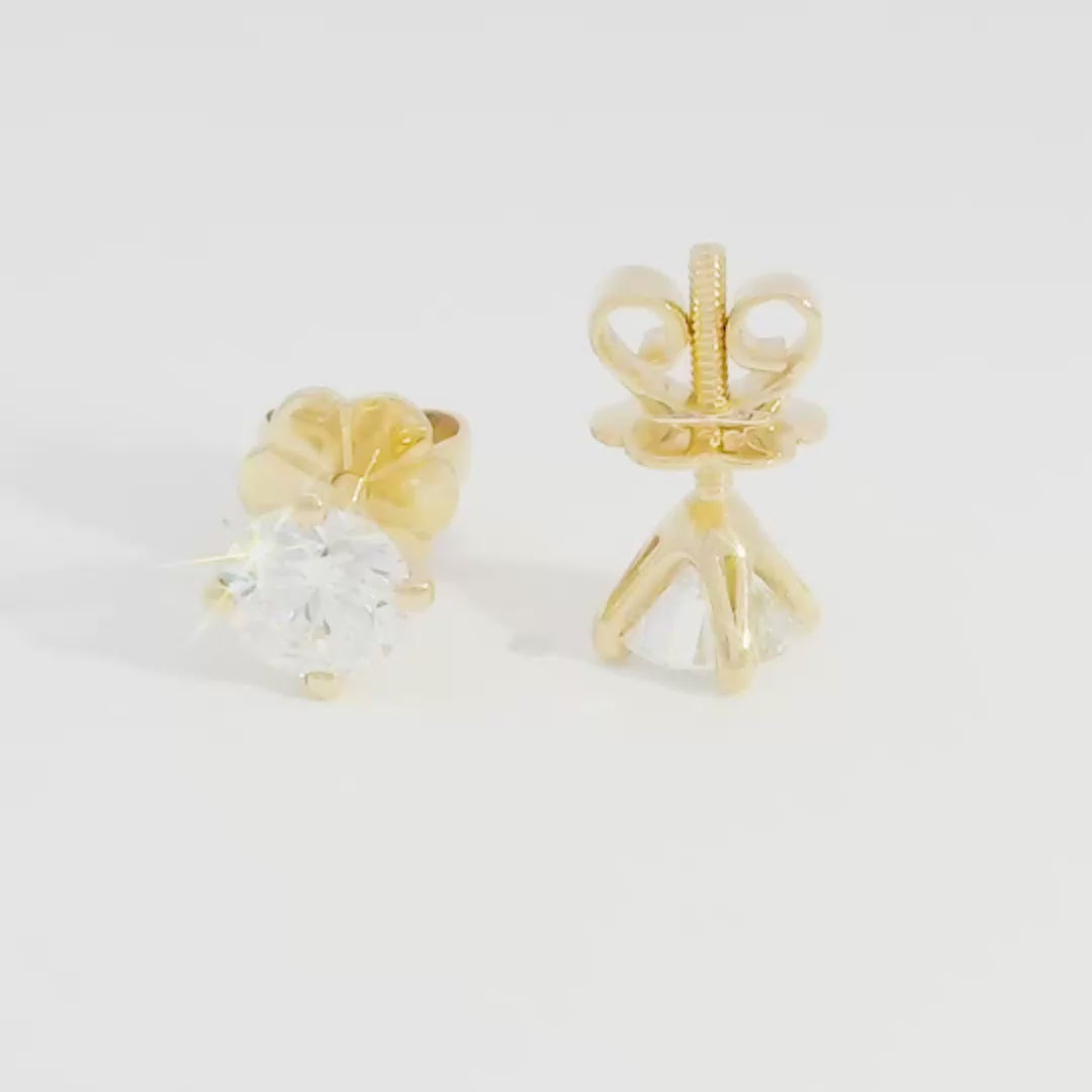 These secure screw-back stud earrings feature a dazzling total of 1 carat weight in brilliant/round cut diamonds. Offering both elegance and peace of mind, they are perfect for adding timeless sparkle to any outfit.