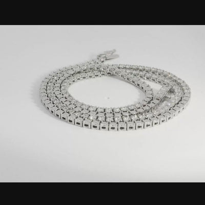 This elegant tennis necklace is crafted in sleek white gold and features a continuous strand of sparkling diamonds totaling 2.88 carats. A timeless piece that adds a touch of sophisticated brilliance to any neckline.